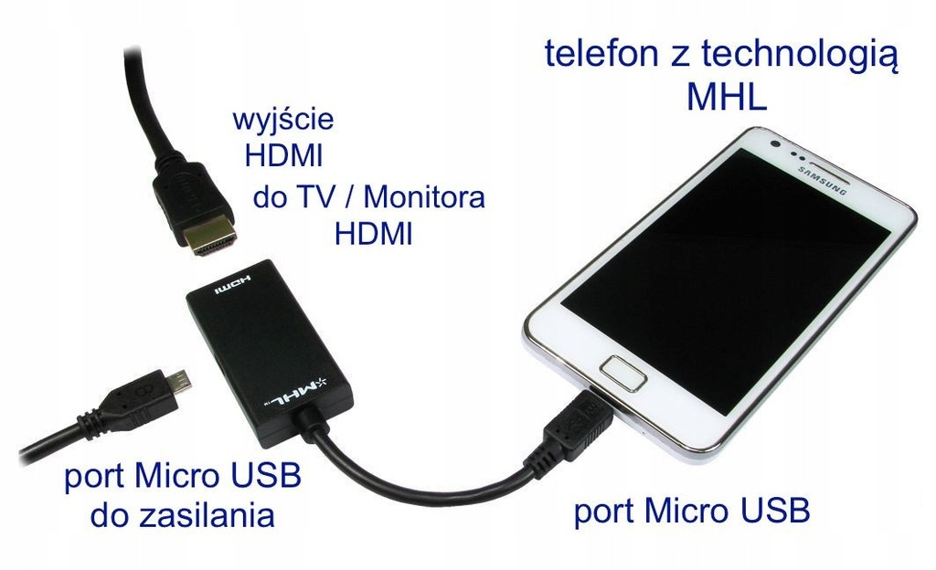 Adapter mhl 5 pin z wbudowanym kablem hdmi i usb symbol towaru. Adapter mhl z kablem hdmi daje nam spore możliwości ponieważ bezpośrednio z tableta lub smartfona wyświetlamy całą zawartość ekranu na naszym telewizorze lub rzutniku nie tylko zdjęcia. Reinston ead02 usb c na microusb reinston ekt01 microusb na usb reinston edv007 hdmi na vga reinston ead06 usb c na jack 3 5 mm gembird a usb2 cmmf 01. Testy wykonałem na note 2 z mhl podłączonym pod starszy monitor samsunga ue32eh5020w bez znaczka mhl.