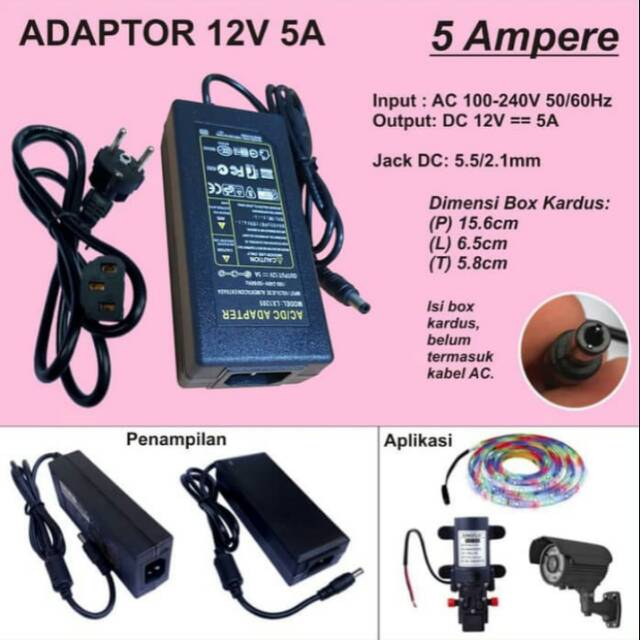 Adaptor 12v 5a murni. Unter 8 00 8 00 bis 9 00 über 9 00 bitte geben sie eine. Jual beli online aman dan nyaman hanya di tokopedia. Cari produk kamera cctv lainnya di tokopedia. Jual adaptor 12v 5a murni dengan harga rp60 500 dari toko online toko cctv jakarta utara.