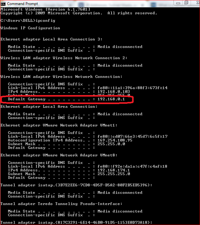 Ipconfig gives me to default gateway or dns suffix. Not sure what to do. Hi power off the modem and if using a separate router power it off too wait 3 minutes power on the modem when it is up and running power on the router. 192 168 1 1 is not working or can not access gateway address.