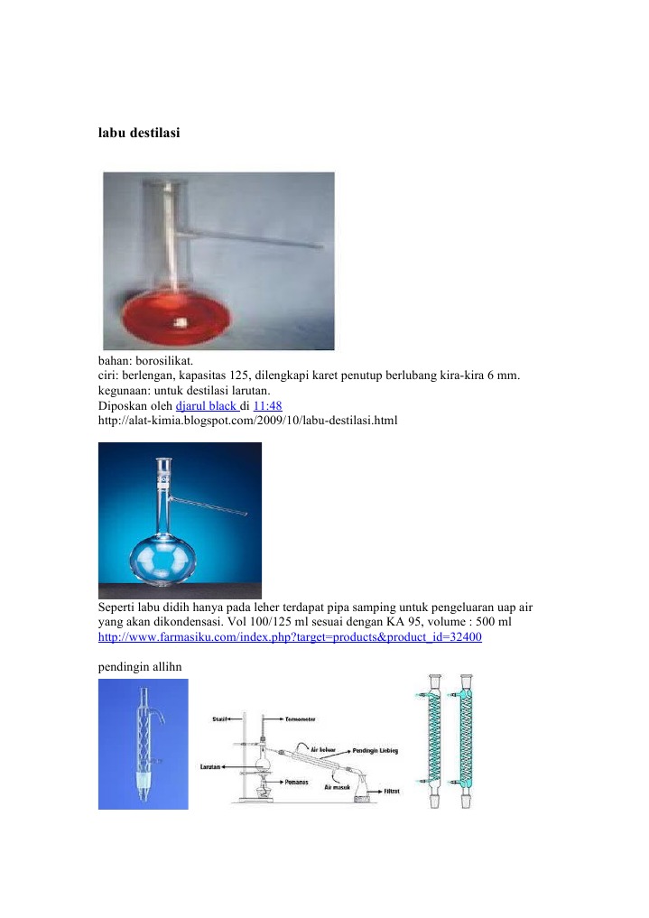 Pada labu destilasi terdapat pipa kearah sisi yang akan disambungkan dengan alat gelas pendingin pada saat digunakan untuk keperluan destilasi. Destilasi juga dapat dipakai untuk campuran dengan perbedaan titik didih kurang dari 20 c dan bekerja pada tekanan atmosfer. Saat ini adaptor yang sering kita kenal adalah jenis adaptor power supply karena jenis adaptor ini biasa kita temukan pada amplifier televisi radio dan perangkat elektronik lainnya. Erlenmeyer sebagai wadah untuk menampung destilat yang diperoleh dari proses destilasi.